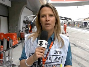 O microfone da repórter da Globo estava aberto quando Luiz Roberto falava sobre o GP da Inglaterra. Neste momento, ela tentou falar com a direção.