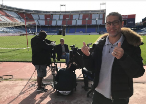 “A proposta é redescobrir esses personagens de uma forma diferente. Queremos dimensionar a importância dos craques em sua época e levá-los de volta às arenas onde brilharam”, explica o diretor Estevão Ciavatta, em destaque na foto acima, durante entrevista com o ex-zagueiro, ídolo do Palmeiras e do Atlético de Madri, Luís Pereira, entrevistado no estádio Vicente Calderón.