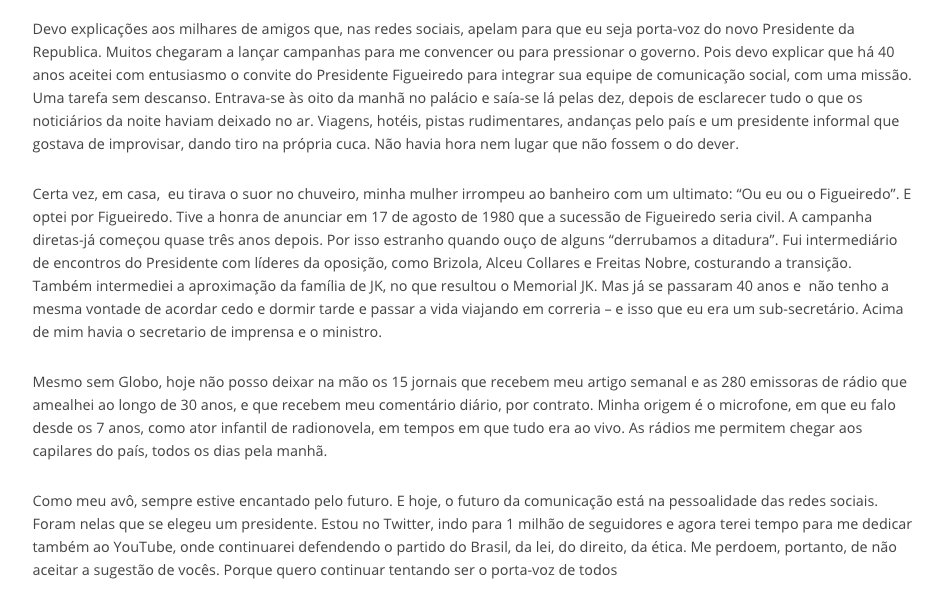 Artigo: Em 15 jornais, minha resposta aos que me querem no governo. “Porta-voz de todos”