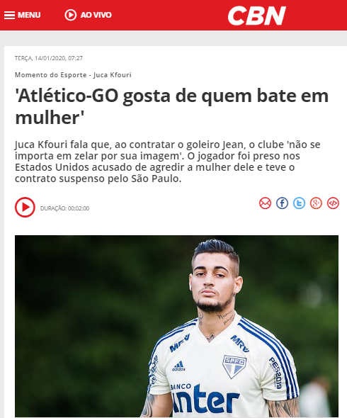 Em seu comentário veiculado na Rádio CBN São Paulo, no portal CBN e também no “Blog do Juca” no site da UOL, o jornalista usou o seguinte título: “O Atlético Goianiense gosta de quem bate em mulher”. Postada primeiramente nestes veículos, a matéria foi republicada em outros meios de comunicação.