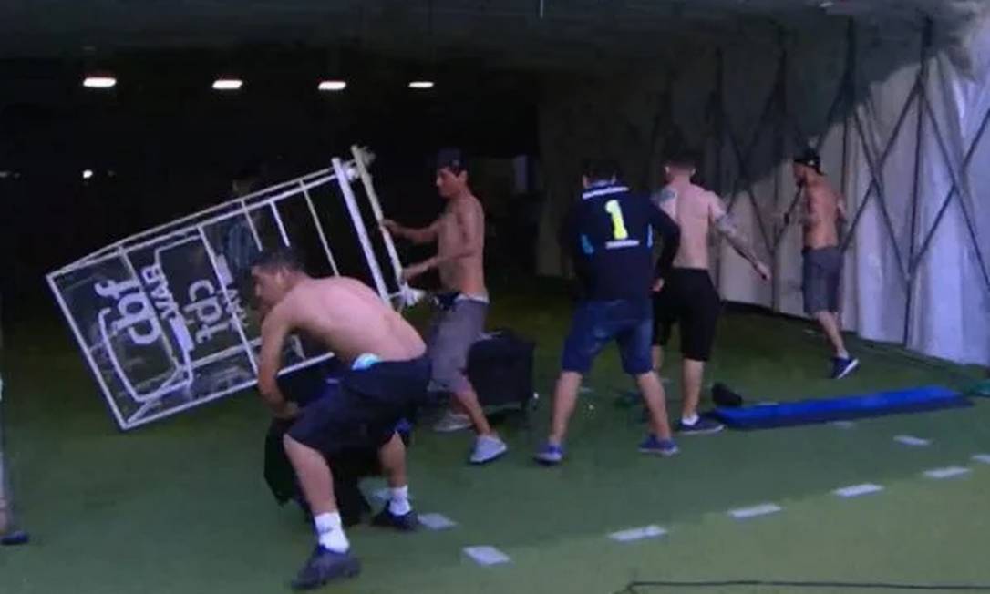Para completar, ainda houve briga entre torcedores do Grêmio e Palmeiras, mesmo divididos por um acrílico na Arena.