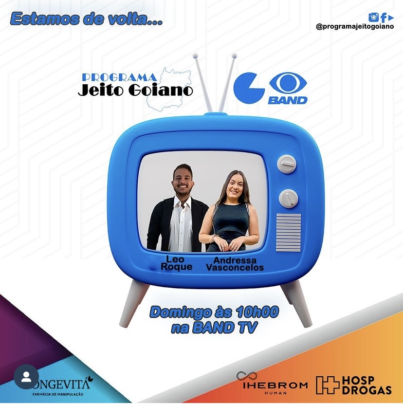 Não perca o retorno emocionante do Jeito Goiano! Sintonize todos os domingos, às 10 horas da manhã, na Band Goiás. Uma manhã repleta de risadas, conversas envolventes e, claro, as novidades que você estava esperando! Siga e acompanhe os bastidores: @programajeitogoiano