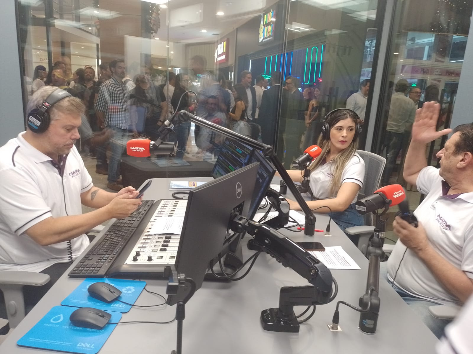 No local, o público pode acompanhar todas as transmissões por meio da vitrine, além de interagir com os locutores.