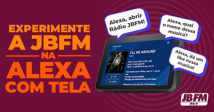 A JB FM 99.9 do Rio de Janeiro, é a primeira rádio com interatividade na Alexa – a assistente virtual da Amazon que usa Inteligência Artificial para responder aos comandos.