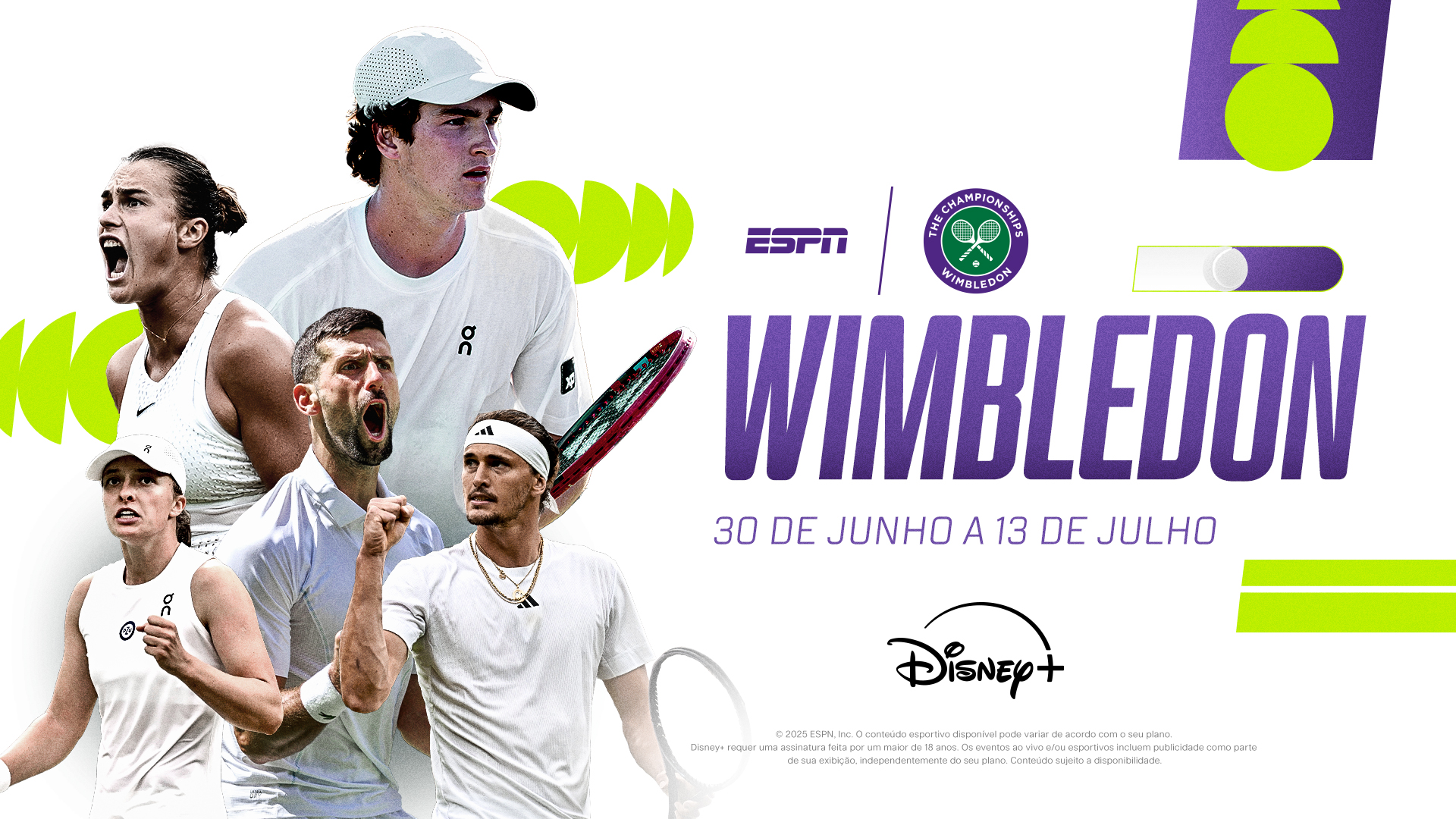 O Wimbledon 2025 será histórico na ESPN e no Disney+! Os fãs de tênis terão acesso à maior e mais completa cobertura já realizada do torneio no país, com mais.