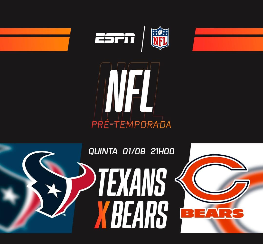 A NFL está de volta: ESPN exibe Bears x Texans na abertura da Pré-Temporada