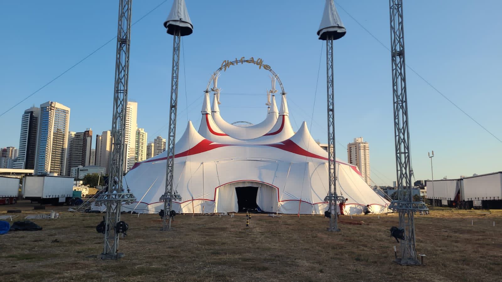 O circo conta com 800 toneladas de equipamentos, compatíveis com a estrutura de grandes festivais de música no Brasil Quem passa pelas proximidades do Flamboyant Shopping já está reparando algo.