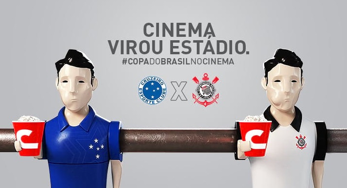 A Rede Cinemark anunciou que exibirá o jogo de ida da final da Copa do Brasil entre Cruzeiro e Corinthians, marcado para esta quarta-feira (10), no Mineirão, com exclusividade no cinema. A transmissão será.
