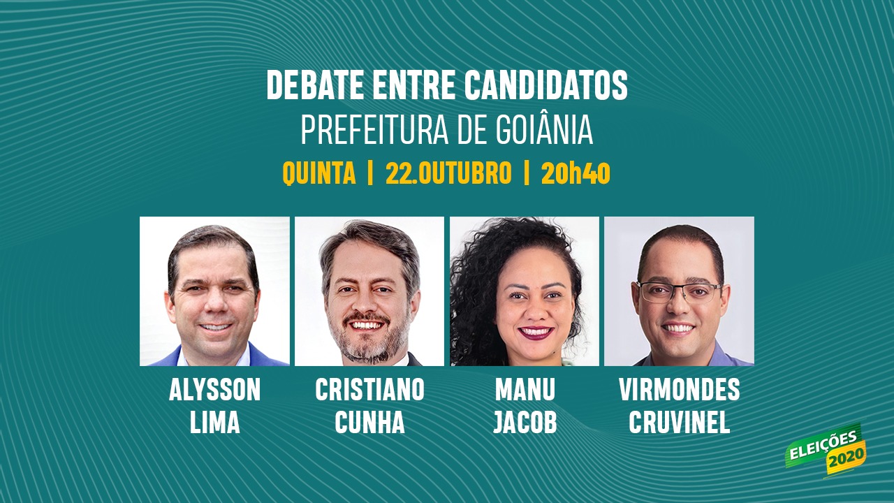 A Agência Brasil Central (ABC) promove, a partir das 20h40 desta quinta-feira, 22, a segunda rodada de debate com os candidatos a prefeito de Goiânia. Dessa vez, os convidados são: Alysson Lima (Solidariedade), Virmondes Cruvinel (Cidadania), Manu Jacob (PSOL) e Cristiano Cunha (PV). Eles vão falar sobre suas propostas para a capital goiana. O encontro terá como mediador o jornalista Paulo Beringhs.