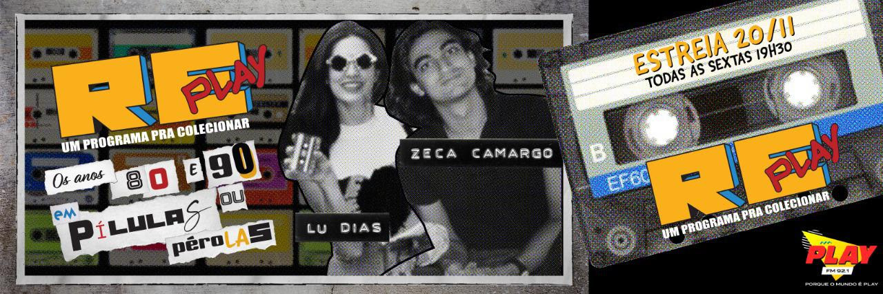 A Play FM 92.1 continua inovando em sua programação e lança o programa Replay nesta sexta-feira (20) às 19h30. Zeca Camargo e Lu Dias estreiam no rádio no comando da atração que trará histórias do mundo da música brasileira e internacional dos anos 1980, 1990 e 2000, bastidores de shows, além de muitas canções que marcaram a vida dos apresentadores e dos ouvintes.