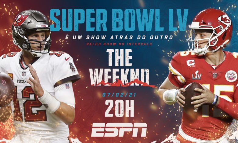A preparação para o jogo no domingo contará com cobertura multiplataforma da ESPN na programação da TV paga, bem como conteúdo especial no portal ESPN.com.br e redes sociais. O sempre aguardado show do intervalo em 2021 será protagonizado pelo cantor canadense The Weeknd