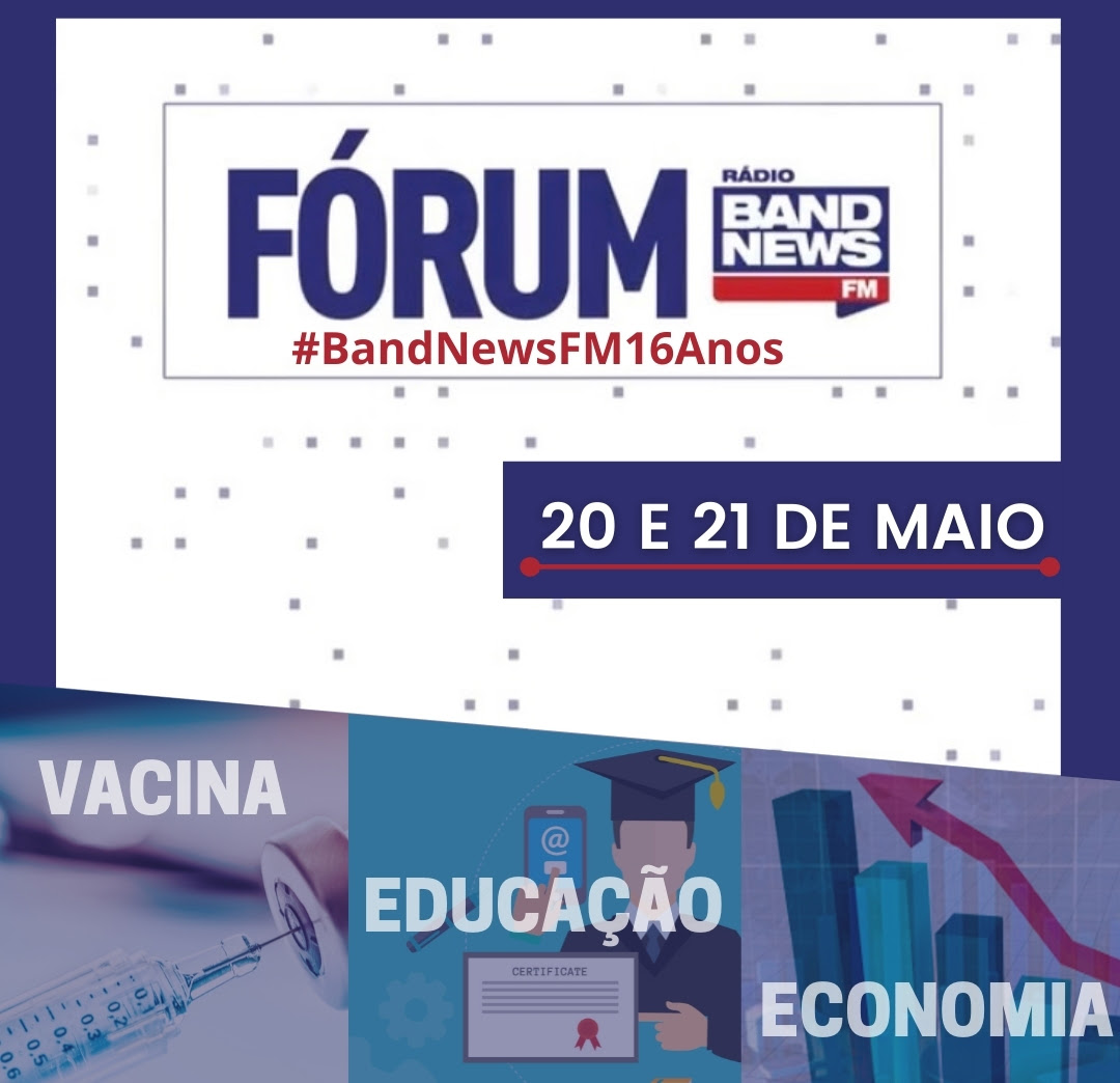 No dia 20, entre 12h e 14h, acontecem os encontros sobre saúde e educação com transmissão ao vivo no dial e nas plataformas digitais da emissora. O Fórum BandNews FM: Vem, vacina, no ar das 12h às 13h com apresentação de Sheila Magalhães e Luiz Megale, vai discutir a imunização da população, única esperança diante de hospitais lotados, novas variantes e aumento de casos e mortes. A fila por vagas em leitos de UTI chegou a 6 mil pacientes. Sem remédio eficaz, o tratamento, nos casos mais graves, se resume ao uso de respiradores. Mas até oxigênio faltou. Até agora, o Brasil contabiliza mais de 15 milhões de casos de coronavírus e ultrapassa a marca de 430 mil mortos. Ao mesmo tempo, a vacinação avança, com 38,7 milhões de pessoas que tomaram pelo menos uma dose. O debate contará com a participação do presidente do Instituto Butantan, Dimas Covas; da diretora-geral assistente da Organização Mundial da Saúde responsável pela área de medicamentos e vacinas, Mariângela Simão; e da presidente da Fiocruz, Nísia Trindade.