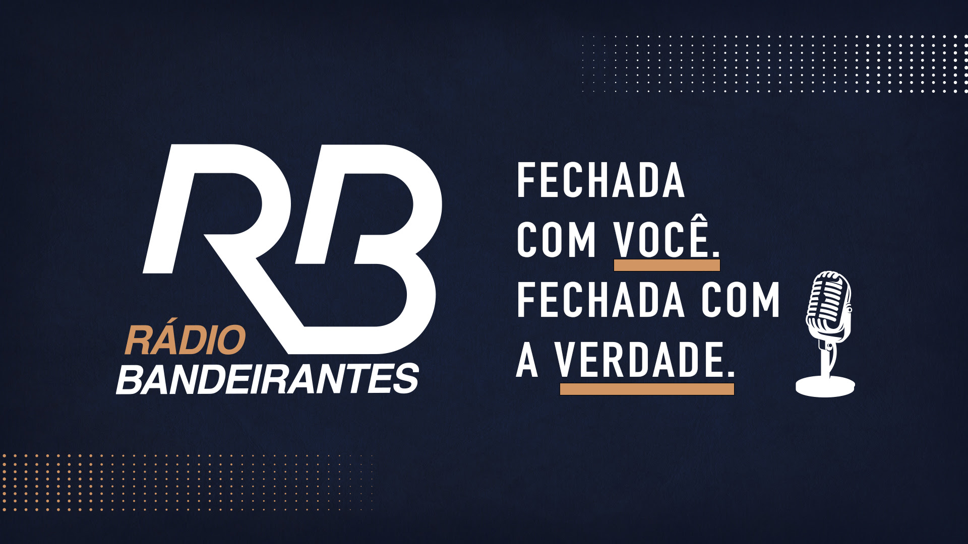 A Rádio Bandeirantes ganha um novo mote que coloca o ouvinte e a verdade onde sempre estiveram: no centro de tudo. O slogan “Fechada com você. Fechada com a verdade” e a nova logomarca traduzem a essência da emissora presente na vida dos brasileiros há 84 anos: credibilidade e confiança.