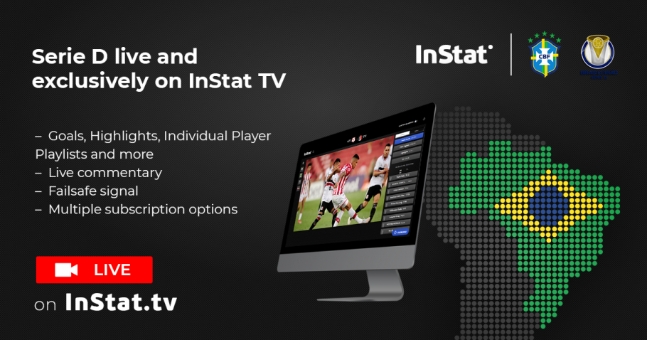 A Série D do Brasileirão será transmitida ao vivo pela InStat TV. A CBF e a plataforma de streaming esportivo firmaram acordo de exclusividade pelas próximas três temporadas (2022, 23 e 24). Para dar as boas-vindas às torcidas de todo o País do Futebol, já teremos jogos transmitidos, gratuitamente, nas quatro primeiras rodadas da competição.