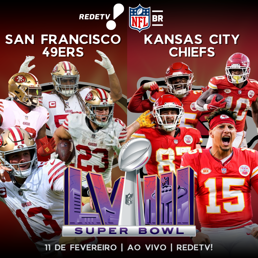 No domingo, dia 11 de fevereiro, diretamente do Allegiant Stadium em Las Vegas, Kansas City Chiefs e San Francisco 49ers entrarão em campo às 20h30 (horário de Brasília) para disputar o título da temporada 2023/24.
