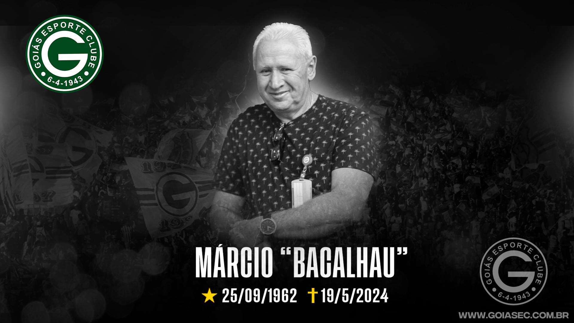 O Goiás emitiu nota de pesar e se solidarizou com amigos e familiares. O velório de Márcio Bacalhau será na Paz Universal, no Setor Coimbra, em Goiânia.