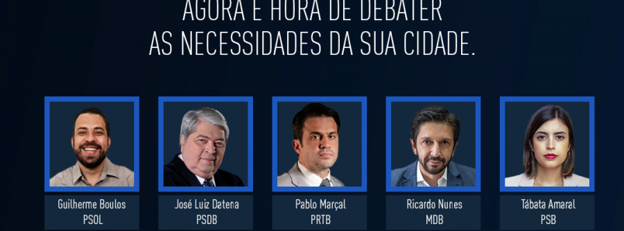 Na capital paulista, a sabatina será mediada pelo jornalista Eduardo Oinegue e contará com as presenças de Guilherme Boulos (PSOL), José Luiz Datena (PSDB), Pablo Marçal (PRTB), Ricardo Nunes (MDB) e Tabata Amaral (PSB).