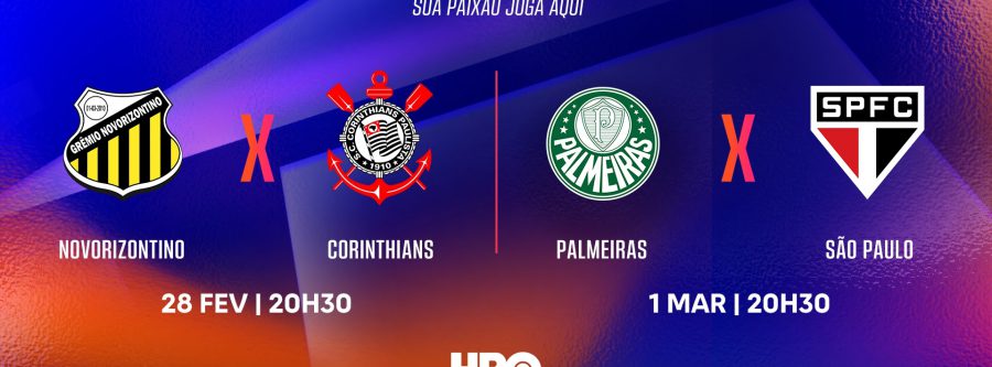 Os quatro clubes classificados para as semifinais do Paulistão se enfrentam em partidas únicas neste fim de semana. No sábado, às 20h30, a bola rola para Novorizontino e Corinthians, no Estádio Jorge Ismael de Biasi, em Novo Horizonte, com transmissão completa da HBO Max e  TNT. Já no domingo, também às 20h30, a plataforma de streaming e o canal linear apresentam o duelo entre Palmeiras e São Paulo, que ocorre na Arena Barueri.