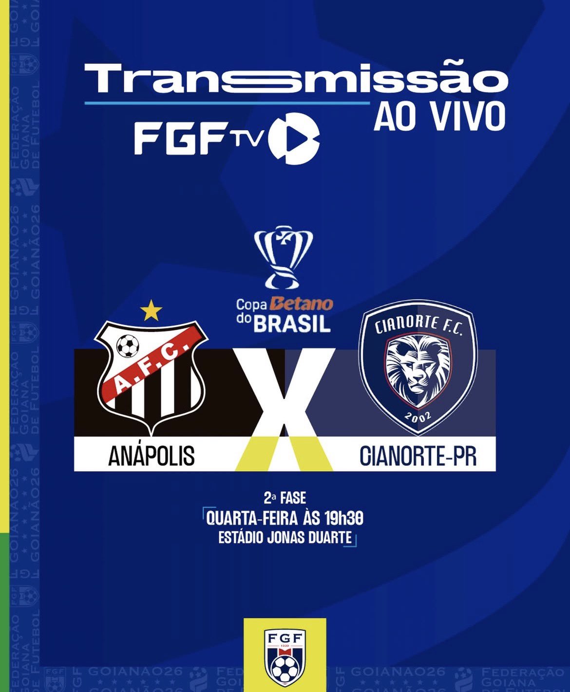 Copa do Brasil: FGF TV transmite estreia do Anápolis; Goiás e Atlético-GO também entram em campo